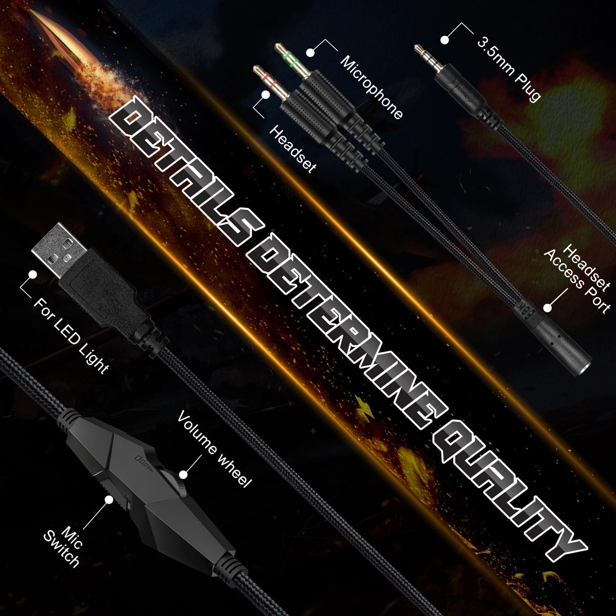 Wired Convenience: USB + 3.5mm 4Pin connection with 2.1m cable for reliable audio