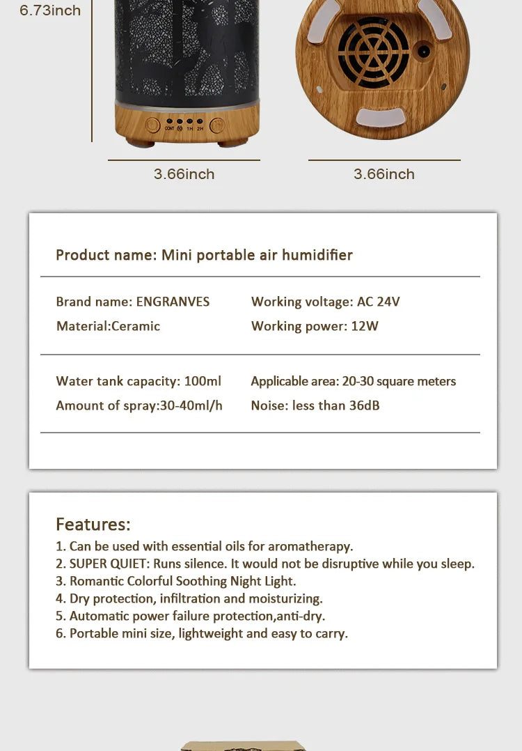 Enhance your home or office with this portable ultrasonic aroma diffuser, featuring a 100ml water tank, quiet operation, and soothing mist to improve air quality.