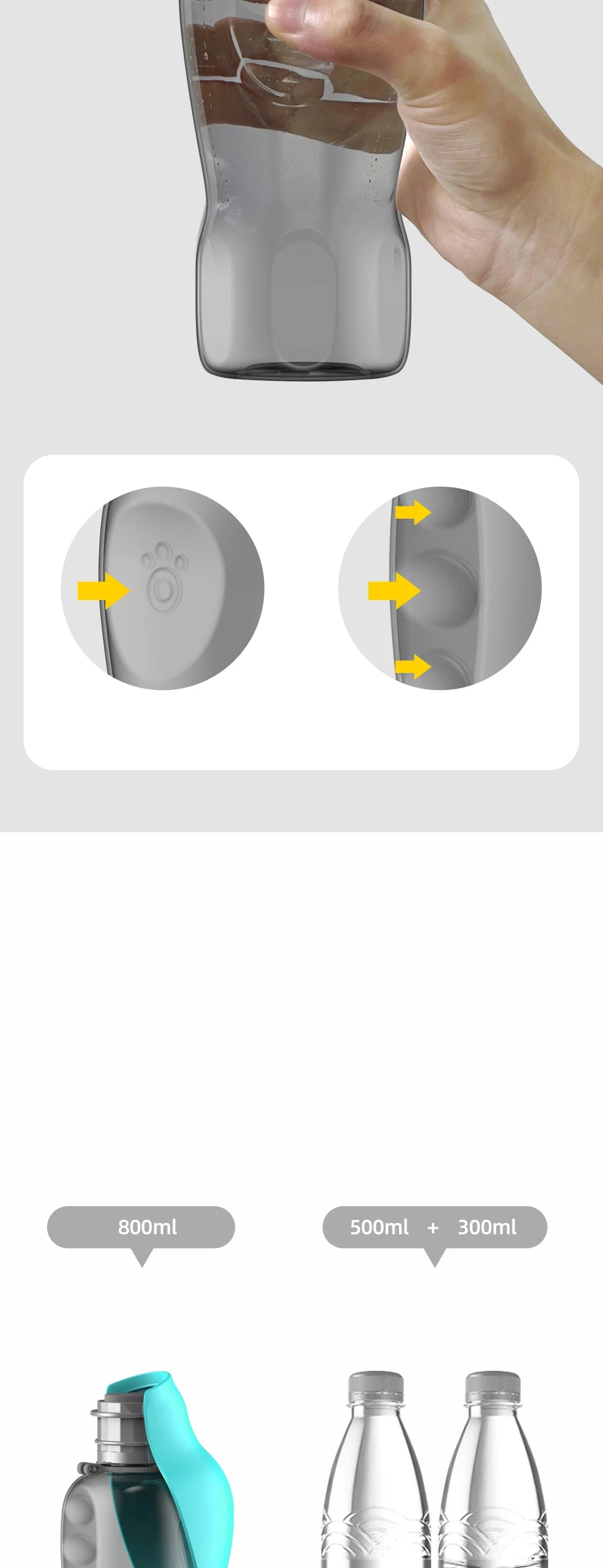 High Capacity: 800ml bottle holds plenty of water for medium and large dogs