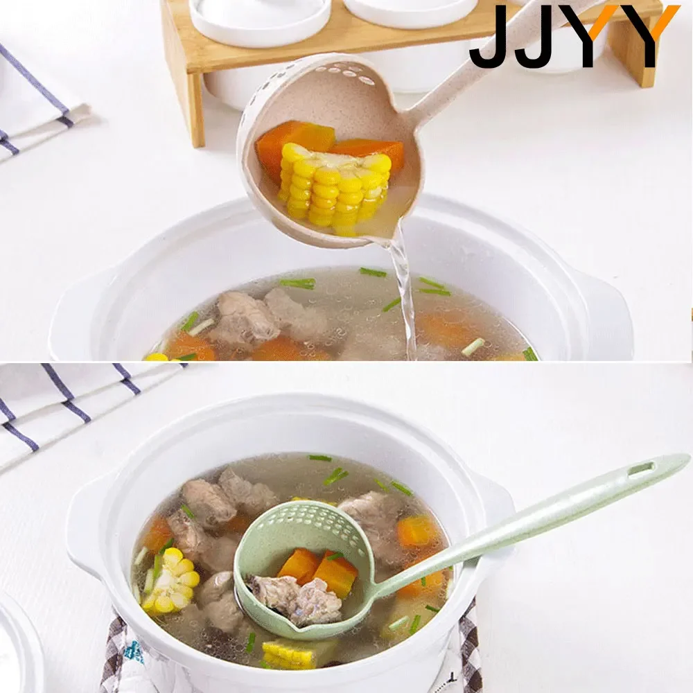 JJYY The 2 in 1 Kitchen Spoon Spoon Long handle Plastic Colander Filter Tableware Hot Pot Spoon